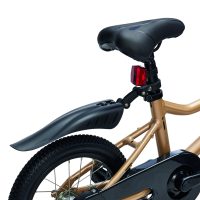 Cyklen leveres desuden med praktiske detaljer, der gør kørslen endnu sjovere og mere sikker: ringklokke til at gøre opmærksom på sig selv samt skærme, der beskytter mod vand og snavs.