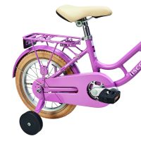 Praktisk tilbehør inkluderer ringklokke, skærme, bagagebærer, støttehjul og en sød kurv foran, som giver mulighed for at tage yndlingslegetøjet med på turen.